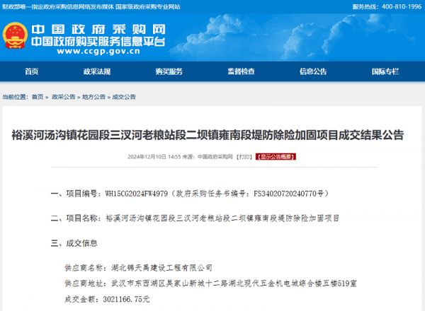 项目名称:裕溪河汤沟镇花园段三汊河老粮站段二坝镇雍南段堤防除险加固项目招标编码:WH15CG2024FW4979招 标 人:芜湖市鸠江区水务局相关网络截图:相关网络链接:裕溪河汤沟镇花园段三汊河老粮站段二坝镇雍南段堤防除险加固项目成交结果公
