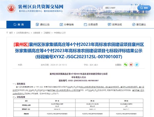 项目名称:襄州区张家集镇高庄等4个村2023年高标准农田建设项目七标段招标编码:XYXZ-JSGC202312SL-007001007招标人:襄阳市襄州区农业综合服务中心相关网络截图: 相关网络链接:襄州区张家集镇高庄等4个村2