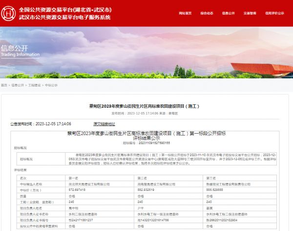 项目名称:进贤县2023年度统筹整合资金推进高标准农田建设新建项目1标段招标人:进贤县农文旅投资集团有限公司相关网络截图:相关网络链接:进贤县2023年度统筹整合资金推进高标准农田建设新建项目1标段中标候选人变更公示