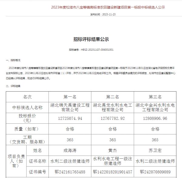 项目名称:京山市 2023 年度高标准农田建设孙桥镇李家巷和杨集镇三台项目四标段招标编码:JMJS-202310SL-004001004招标人:京山市农田建设服务中心相关网络截图:相关网络链接:京山市 2023 年度高标准农田建设孙桥镇李家