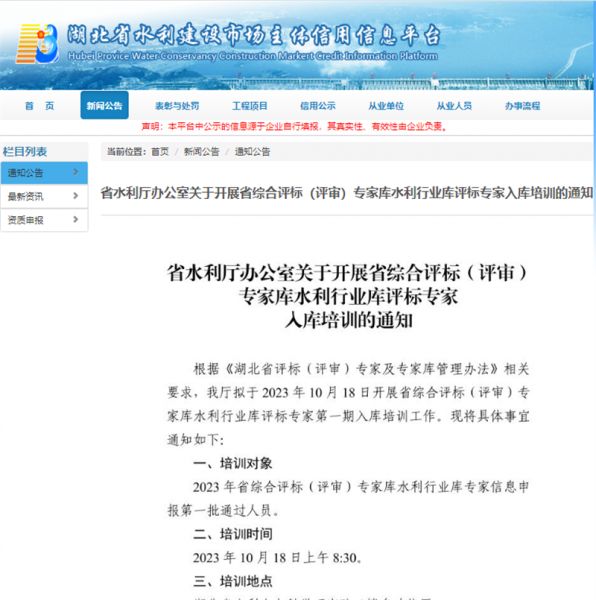 相关网络截图:相关网络链接:省水利厅办公室关于开展省综合评标(评审)专家库水利行业库评标专家入库培训的通知