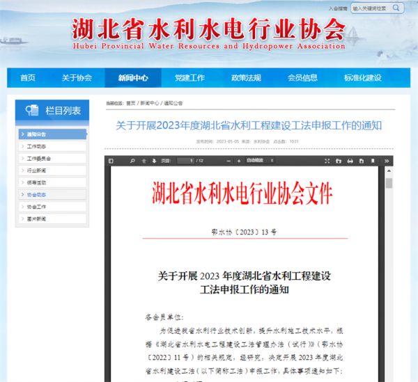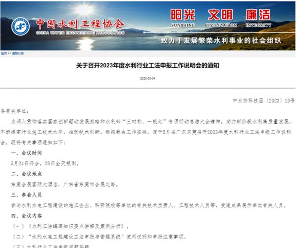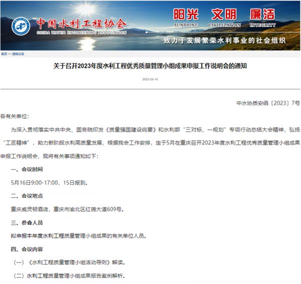 相关网络截图:相关网络链接:关于召开2023年度水利工程优秀质量管理小组成果申报工作说明会的通知