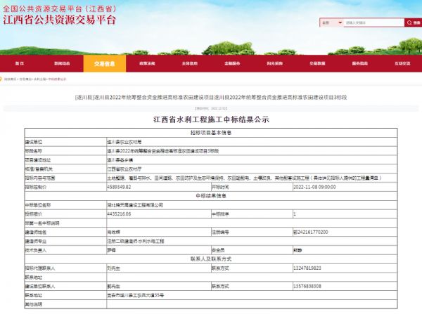 项目名称:遂川县2022年统筹整合资金推进高标准农田建设项目三标段招标编码:/招标人:遂川县农业农村局相关网络截图:相关网络链接:https://www.jxsggzy.cn/jyxx/002003/002003005/20221202/6