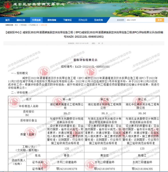 项目名称:咸安区2022年渠道灌溉及饮水抗旱应急工程(EPC)咸安区2022年渠道灌溉及饮水抗旱应急工程(EPC)招标编号:XAZX-202211SL-006001001招标人:咸宁市咸安区小型农田水利工程建设项目管理部相关网络截图:相关网