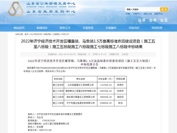 项目名称:2022年济宁经济技术开发区疃里镇、马集镇1.5万亩高标准农田建设项目七标段招标编码:/招标人:济宁经济技术开发区高标准农田建设工程管理处相关网络截图:相关网络链接:http://ggzyjyzx.shandong.gov.cn/