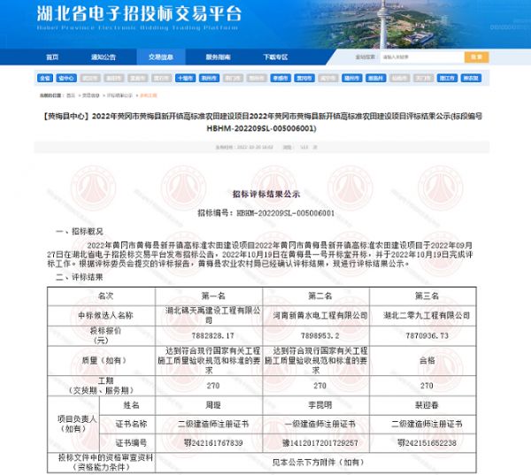 项目名称:2022年黄冈市黄梅县新开镇高标准农田建设项目招标编码:/招标人:黄梅县农业农村局相关网络截图:相关网络链接:http://www.hbbidcloud.com/hubei/jyxx/004004/004004002/202210