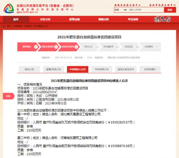 项目名称:2021年肥东县白龙镇高标准农田建设项目招标编码:2021ADDGZ00547 招标人:肥东县白龙镇人民政府相关网络截图:相关网络链接:2021年肥东县白龙镇高标准农田建设项目中标候选人公示