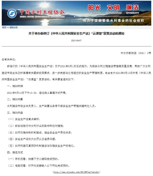 相关网络截图:相关网络链接:关于举办新修订《中华人民共和国安全生产法》“云课堂”宣贯活动的通知