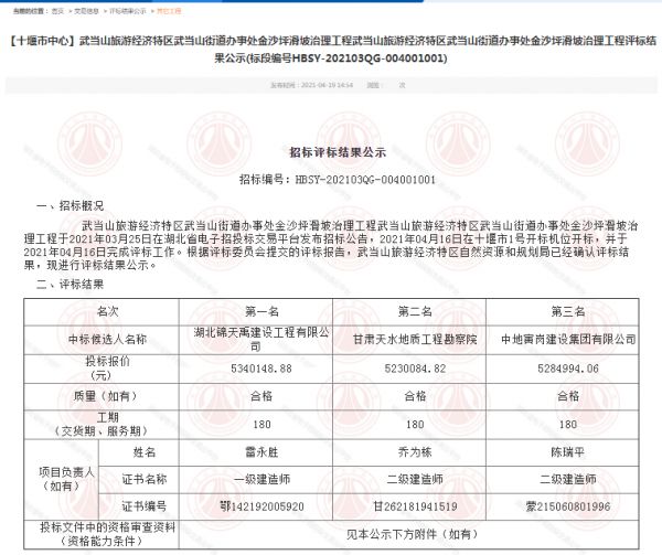 项目名称:武当山旅游经济特区武当山街道办事处金沙坪滑坡治理工程招标编码:HBSY-202103QG-004001001招标人:武当山旅游经济特区自然资源和规划局相关网络截图:相关原文链接:武当山旅游经济特区武当山街道办事处金沙坪滑坡治理工程