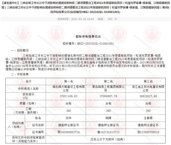项目名称:三峡后续工作长江中下游影响处理湖北荆州段二期河道整治工程2021年度提前批项目(松滋市罗家潭-杨家垴、江陵县耀新民堤)第8标段招标编码:HBSJ-202102SL-010001001招标人:荆州市长江河道管理局相关网络截图:相关原