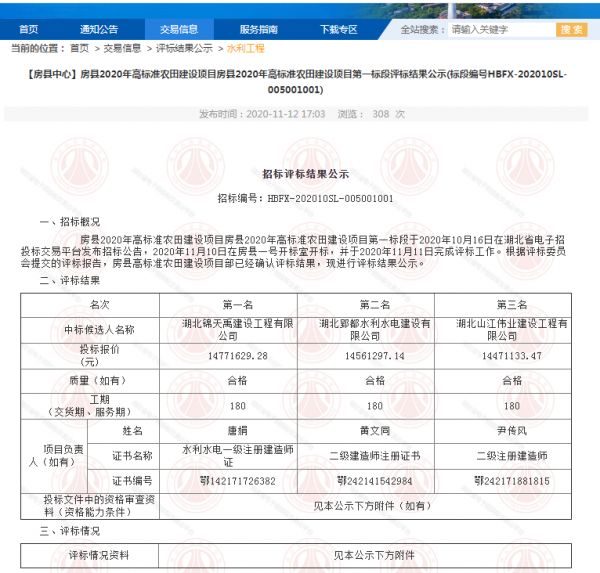 项目名称:房县2020年高标准农田建设项目第一标段招标编号:HBFX-202010SL-005001001招标人:房县高标准农田建设项目部相关网络截图:相关原文链接:房县2020年高标准农田建设项目第一标段评标结果公示