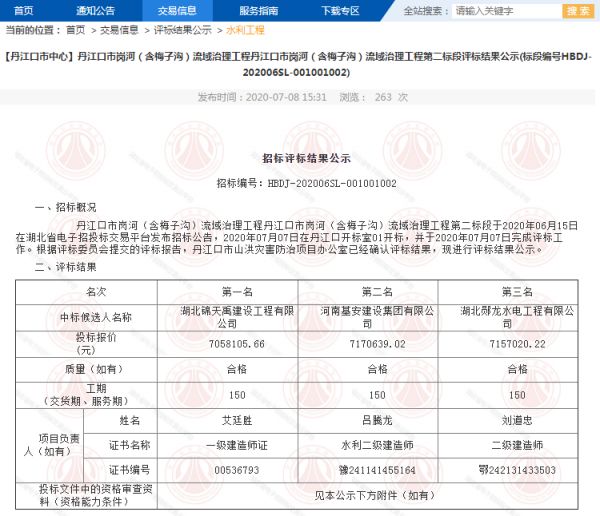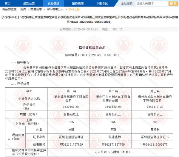 项目名称:京山市2020年农村饮水安全债券资金项目施工招标编号:JS2020031招标人:京山市农村饮水安全工程建设管理办公室相关网络截图:相关网络链接:京山市2020年农村饮水安全债券资金项目施工 招标评标结果公示