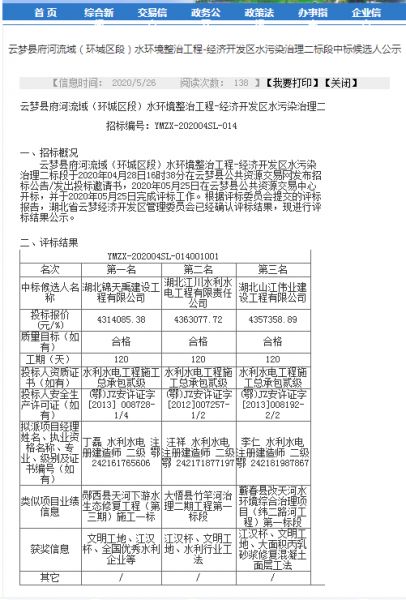 项目名称:云梦县府河流域(环城区段)水环境整治工程-经济开发区水污染治理二标段招标编号:YMZX-202004SL-014招标人:湖北省云梦经济开发区管理委员会相关网络截图:相关网络链接:云梦县府河流域(环城区段)水环境整治工程-经济开发区
