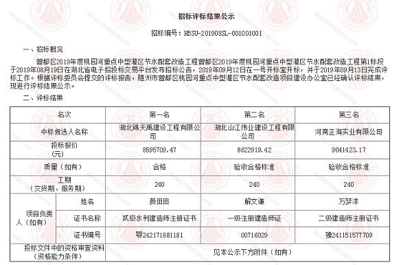 项目名称:曾都区2019年度桃园河重点中型灌区节水配套改造工程第一标段 项目编号:HBSU-201908SL-001001001 招标人:随州市曾都区桃园河重点中型灌区节水配套改造项目建设办公室 相关网络链接:http://www.hbbidcloud.cn/hubei/jyxx/004004/004004002/20190916/8a71db81-ed41-4c75-a7ec-5ceccde53ed7.html?tdsourcetag=s_pc