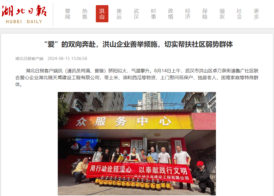 原文链接:湖北日报《“爱”的双向奔赴,洪山企业善举频施,切实帮扶社区弱势群体》
