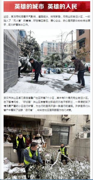 近日,武汉遭遇新一轮强降雪天气,路面交通受到严重影响。在这关键时刻,公司迅速响应,展现出企业的责任与担当。2024年2月22日,根据湖北省住建厅的号召,公司总经理王昌云亲自率队,带领22名干部职工组成铲雪突击队,深入武昌区洪山侧路、洪山广场