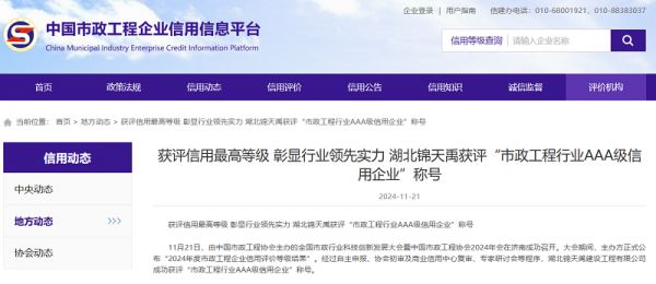 11月21日,由中国市政工程协会主办的全国市政行业科技创新发展大会暨中国市政工程协会2024年会在济南成功召开。会上,九游官方网页版_九游(中国),成功获评“市政工程行业AAA级信用企业”称号。随后,中国市政协会官网以《获评信用最高等级 彰显行
