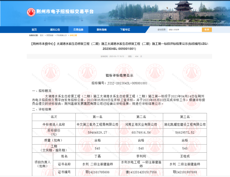 相关网络链接:【荆州市本级中心】太湖港水系生态修复工程(二期)施工太湖港水系生态修复工程(二期)施工第一标段评标结果公示