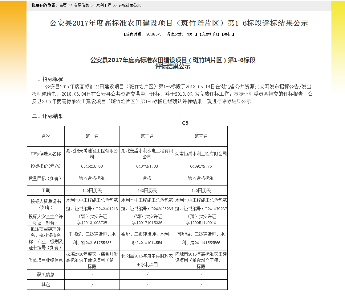 项目名称:公安县2017年度高标准农田建设项目(斑竹垱片区)第5标段