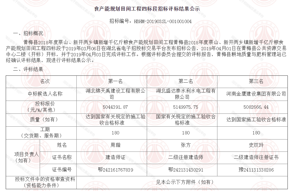 项目名称:黄梅县2018年度蔡山、新开良乡镇新增千亿斤粮产能规划田间工程四标段